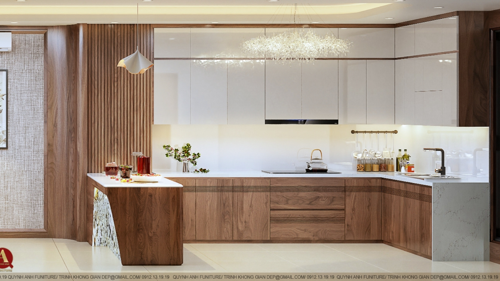 Công trình thi công nội thất gỗ óc chó do Nội thất Quỳnh Anh thực hiện là sự kết hợp hoàn hảo giữa nghệ thuật thiết kế đương đại và giá trị tinh tuyển của chất liệu tự nhiên. Mỗi không gian trong ngôi nhà – từ phòng khách, phòng bếp cho đến phòng ngủ – đều được xử lý tinh tế, mang dấu ấn cá nhân của gia chủ và tiêu chuẩn thẩm mỹ của phân khúc cao cấp.