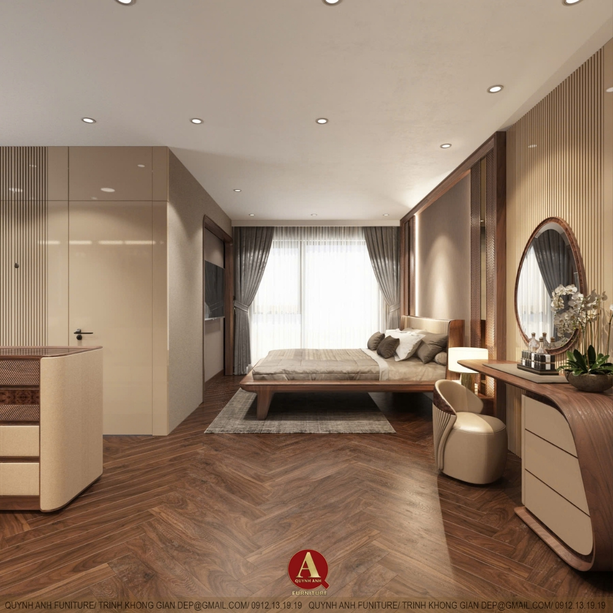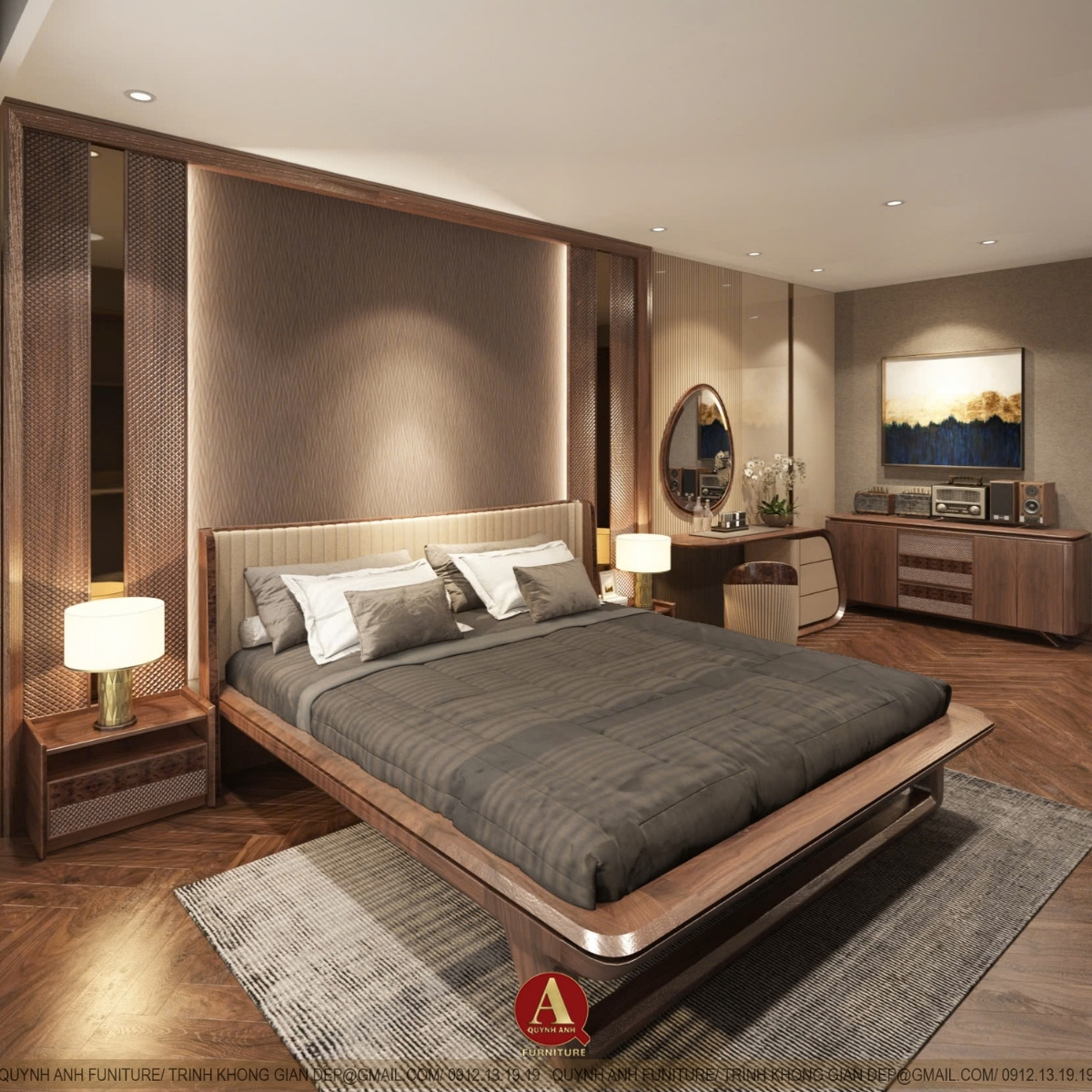 Sang trọng không nằm ở những chi tiết phô trương, mà ở sự tinh giản đủ để người ta phải dừng lại ngắm nhìn. Một phòng ngủ gỗ óc chó được thiết kế chuẩn mực luôn mang trong mình vẻ đẹp ấy – vẻ đẹp của sự chọn lọc, chỉn chu và tinh tế đến từng đường nét.