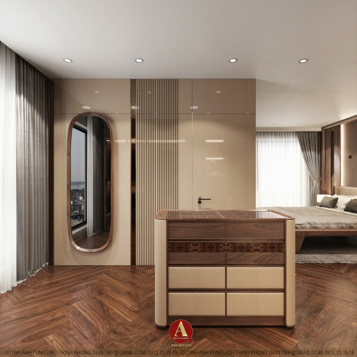 Một phòng ngủ gỗ óc chó đẹp không chỉ dừng lại ở cảm giác êm ái khi bước vào, mà còn ở cách nó nâng tầm từng trải nghiệm nhỏ nhất: cảm giác chạm tay lên bề mặt gỗ mịn, khoảnh khắc bạn kéo rèm và ánh sáng khẽ rơi lên từng lớp vân, hay sự tĩnh lặng đủ sâu để mọi suy nghĩ trở nên trong trẻo hơn. Đó là những giá trị mà chỉ những ai thực sự coi trọng chất lượng sống mới cảm nhận hết được.